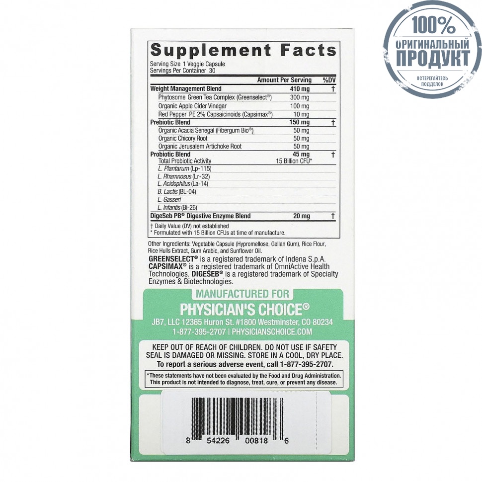 Physician's Choice, Тонкий 30 пробиотиков, 15 млрд КОЕ, 30 растительных капсул